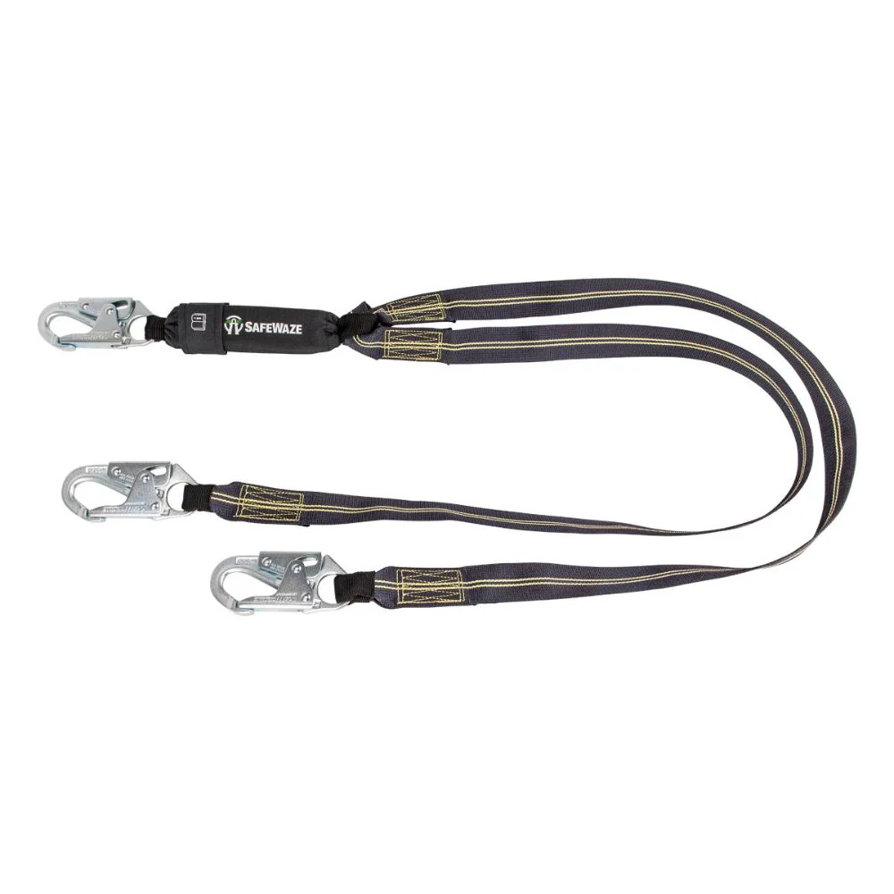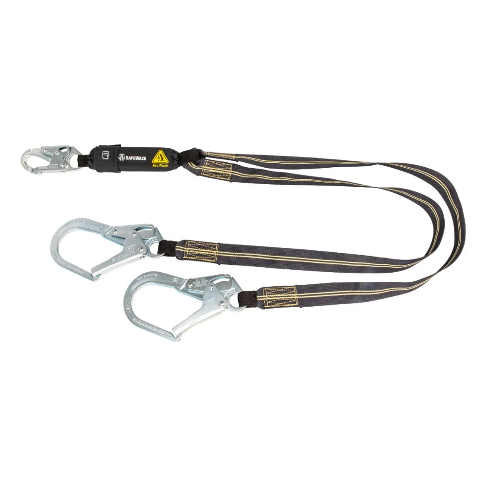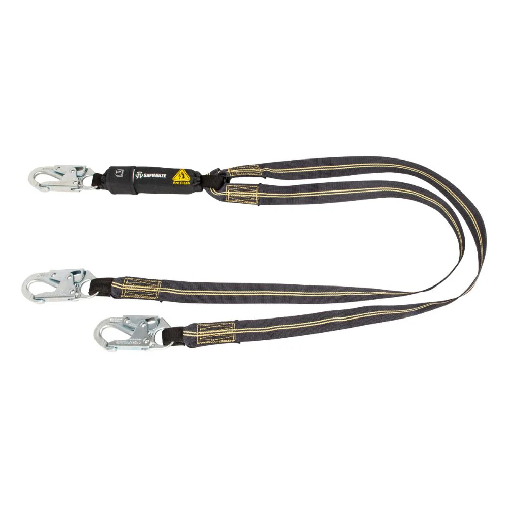 Safewaze 020-2044 Arc Flash 6' Energy Absorbing Lanyard: Aramid, Dual Leg, Snap Hooks
