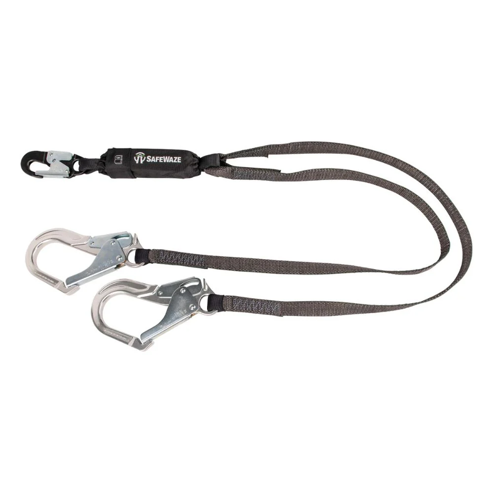 Safewaze 019-2016 Leading Edge 6' Energy Absorbing Lanyard: Dual Leg, Alu Swivel Rebar Hooks
