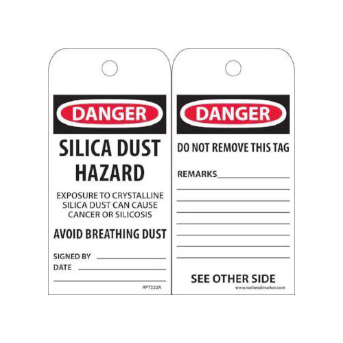 NATIONAL MARKER RPT222A Danger Silica Dust Hazard Vinyl Tags 6" x 3" (25pk)