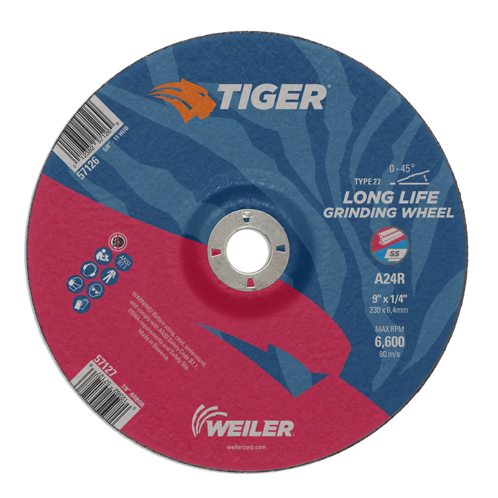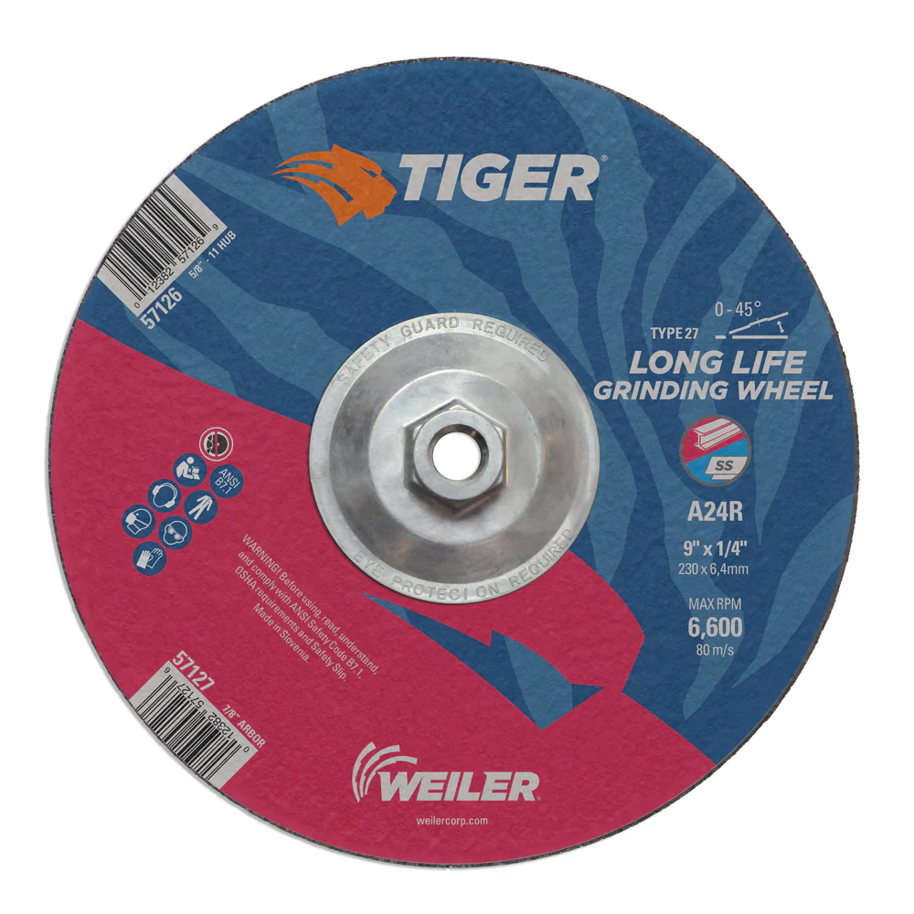 Weiler 57120 4-1/2" x 1/4" Tiger Type 27 Grinding Wheel, A24R, 5/8"-11 UNC Nut