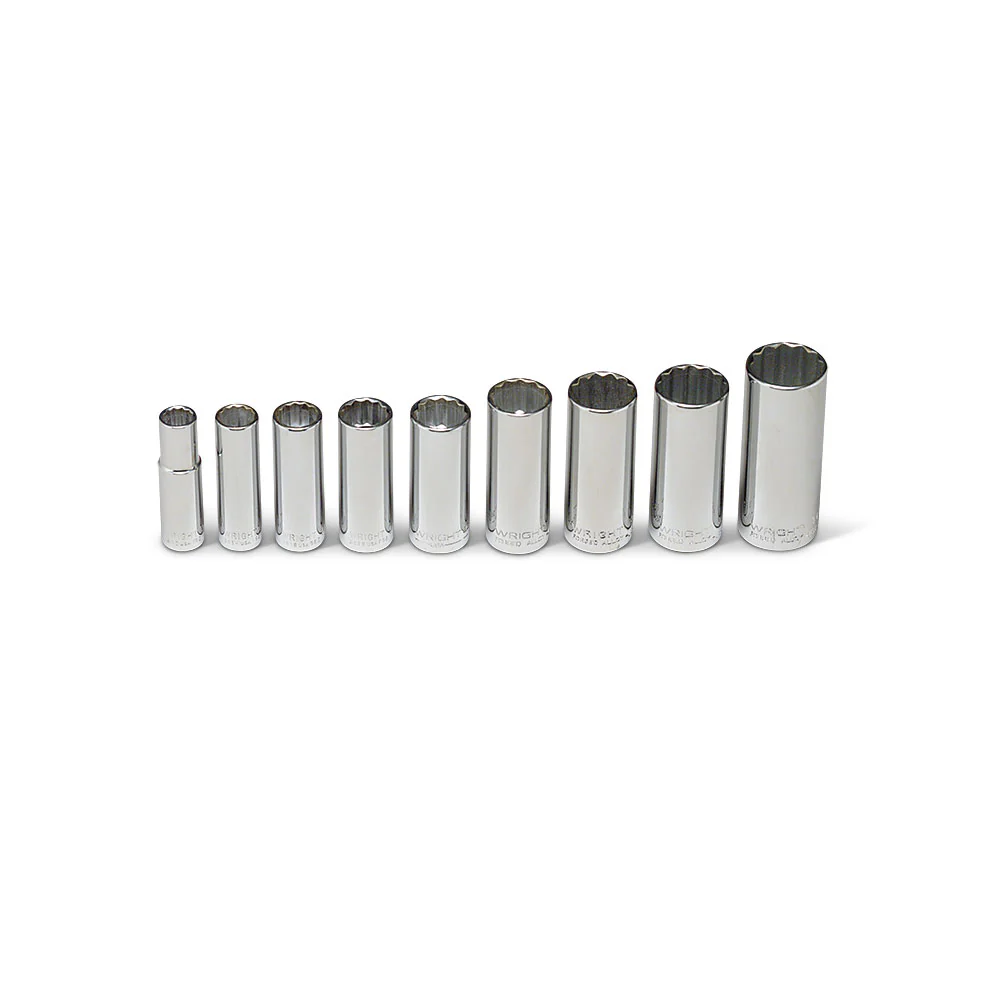 Wright Tool 300 3/8" Drive, 9 Piece 12 Point Deep Sockets Set, 3/8" - 7/8"